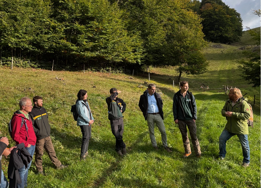 Am Montag, den 29. September 2025, durfte die Gemeinde Utzenfeld Umweltstaatssekretär André Baumann und Sarah Hagmann oberhalb von Utzenfeld auf der Weidefläche begrüßen.