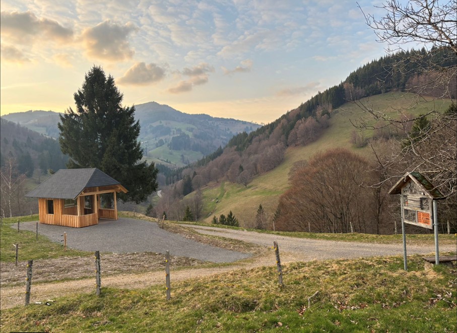 In der Schutzhütte wurde vor kurzem die Hinweistafel angebracht, die den Alltag der Hirten auf den Utzenfelder Weidebergen erklärt.
